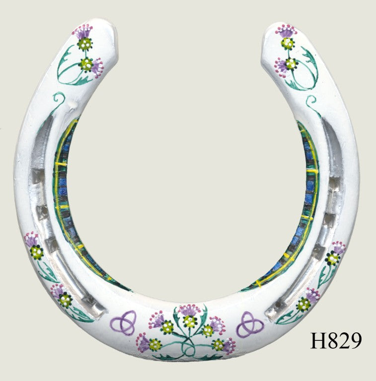 All horseshoes are genuine used shoes. They are thoroughly cleaned, under-painted with white and decorated using special enamel paint.