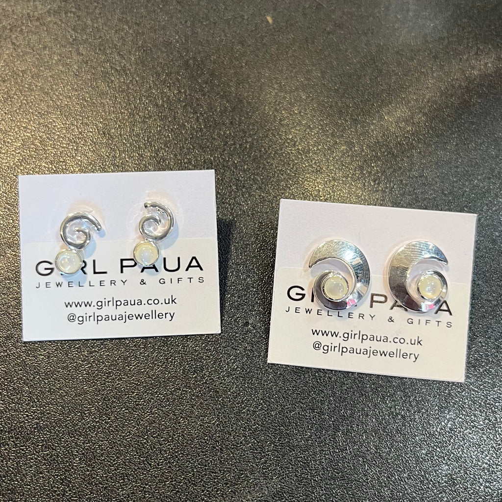 Beautiful Paua Shell (New Zealand Abalone) Koru Spiral Earrings. Koru is the maori symbol for the unfurling of the silver fern, and looking to the future with hope in your heart.