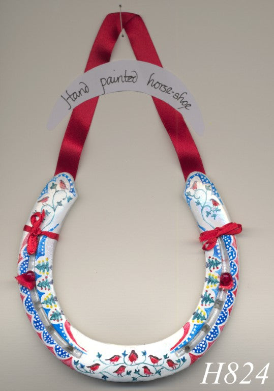 All horseshoes are genuine used shoes. They are thoroughly cleaned, under-painted with white and decorated using special enamel paint.