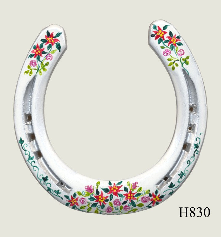 All horseshoes are genuine used shoes. They are thoroughly cleaned, under-painted with white and decorated using special enamel paint.